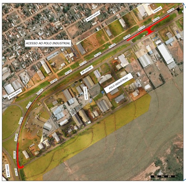 Além disso, haverá alargamento da pista da BR-163, com a construção de uma nova faixa. Esse será o caminho para que mquiser entrar no polo e a saída para quem for viajar no sentido norte. Já na parte inferior do polo, será aberto novo trecho de acesso.