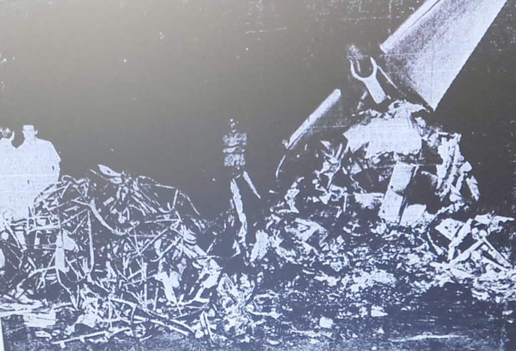 FOTO: Weimar Torres, primeiro à esquerda (avervo Sultan Raslan) O que restou do avião (foto JB)