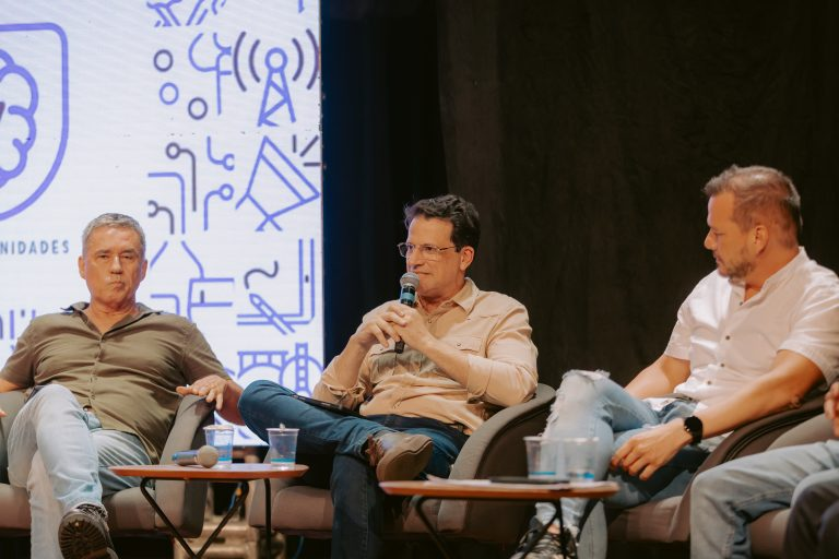 Na roda “Os desafios para o financiamento do setor criativo” Eduardo Mendes, diretor presidente da Fundação de Cultura de Mato Grosso do Sul e do Fórum Estadual de Cultura, Vítor Samudio, presidente do Conselho Municipal de Cultura de Campo Grande, Pedro Ortale, produtor cultural e idealizador da Bienal Pantanal, Ítalo Milhomem, Gestor do SESI Cultura MS e o deputado estadual Júnior Mochi apresentaram panoramas do fomento público e privado para a cultura e economia criativa.
