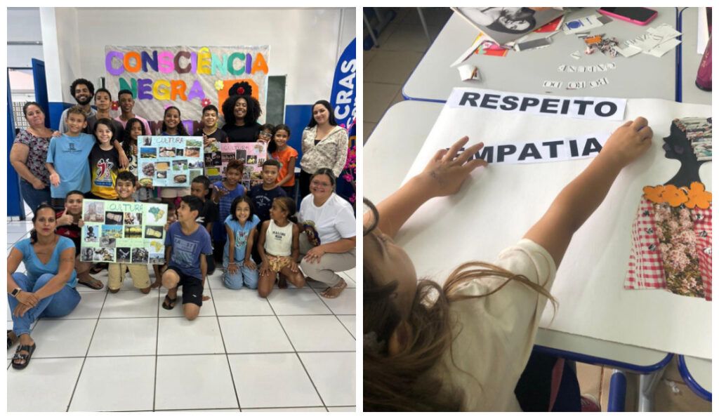Em atividades lúdicas, como a confecção do mural das contribuições afro, indígenas e migrantes, os jovens puderam se conectar com a História. O coordenador da unidade, Gilberto Gomes, detalhou como o tema foi abordado de forma didática. “A gente procurou trazer de forma lúdica, de forma que as crianças entendam que não é só um feriado. Procuramos resgatar a essência da cultura afro através de livros, contação de histórias. Alguns temas nós abordamos em um cartaz, onde trabalhamos colagens com foco na valorização da identidade e das características físicas de cada pessoa”, explicou.