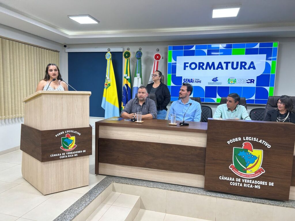 Parceria entre o Senai e a Prefeitura de Costa Rica formou 134 novos profissionais para atuar no mercado de trabalho. Em cerimônia realizada na Câmara Municipal, os alunos receberam diplomas de qualificação como mecânico de motores de ciclo diesel, soldador industrial, eletricista industrial, eletricista de automóveis, operador de computador e assistente administrativo.