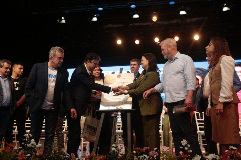 “Hoje é um dia de muita emoção, porque estamos testemunhando um país que dá certo e dará certo, afinal estamos vendo a união de todas as pessoas, gestoras e gestores, em prol da educação, da ciência e da tecnologia. Receber o ministro e sua equipe em nossa casa é como receber uma visita que a gente espera para mostrar o que temos feito”, disse Camila Ítavo, reitora da UFMS, que aproveitou o evento para anunciar o lançamento, em 2026, de dois novos cursos da instituição: inteligência artificial e relações exteriores.