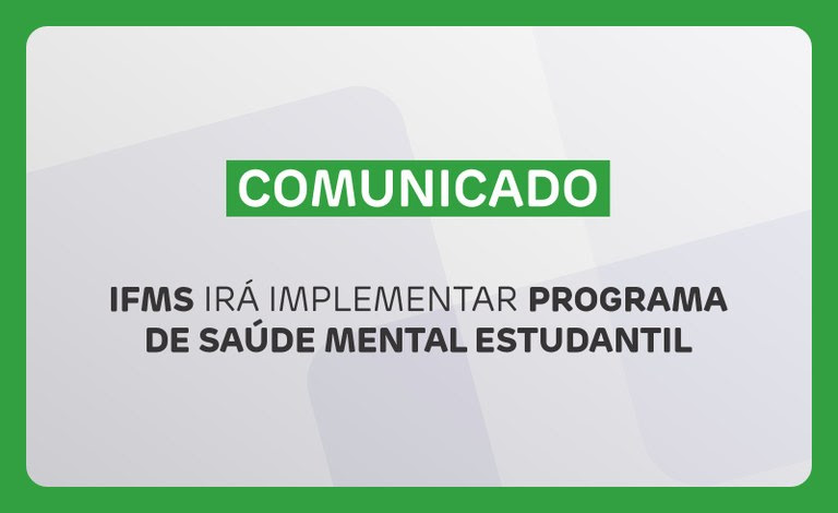 - Programa Institucional de Saúde Mental dos Estudantes do IFMS: com diretrizes, linhas de atuação, ações permanentes e estratégias de monitoramento; e