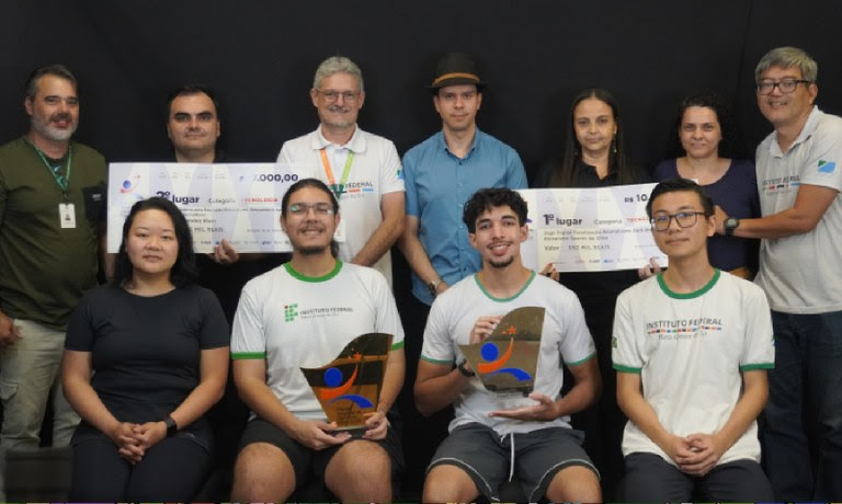 Estudantes e professores do Campus Campo Grande conquistaram o 1º e 2º lugares na categoria Tecnologia e receberam troféus e prêmios em dinheiro
