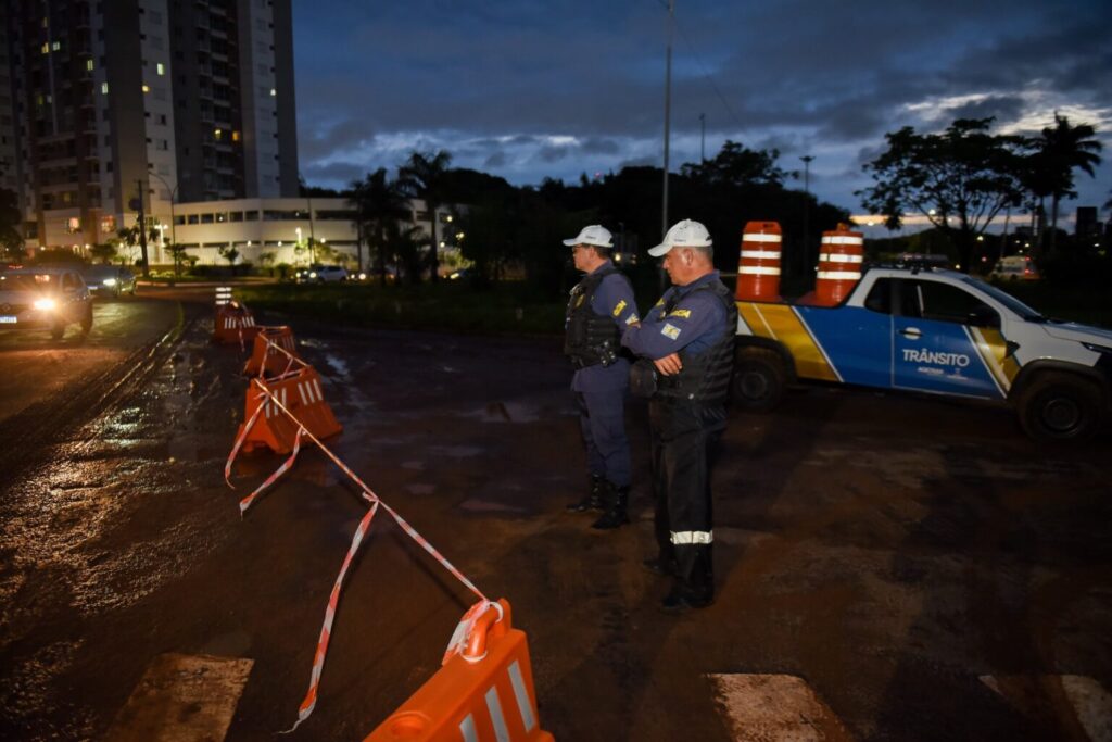 A prefeita Adriane Lopes esteve no ponto mais crítico no início da noite desta quinta-feira (13): o cruzamento da Avenida Rachid Neder com a Ernesto Geisel, onde houve desplacamento do pavimento. A via opera com interdição parcial e, caso volte a chover nos mesmos níveis registrados, poderá ser totalmente interditada para garantir a segurança dos condutores.