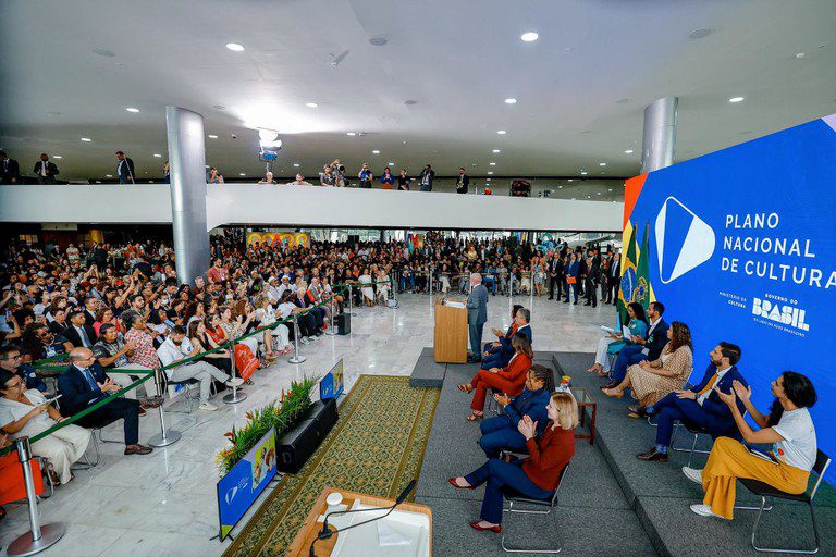 O presidente Luiz Inácio Lula da Silva exaltou, nesta segunda-feira, 17 de novembro, em cerimônia no Palácio do Planalto, todos aqueles que se dedicam a promover e manifestar cultura no Brasil. “Vocês representam a alma e a mente do povo brasileiro. Façam a revolução cultural que o Brasil precisa que seja feita para que nunca mais alguém tenha coragem de dizer que a cultura não vale nada”, afirmou, na cerimônia que formalizou o envio do Projeto de Lei do Plano Nacional de Cultura (PNC 2025–2035) ao Congresso Nacional.