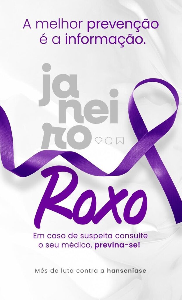 A hanseníase é uma doença causada por uma bactéria que atinge a pele e os nervos periféricos. Quando não tratada ou tratada tardiamente, pode causar deficiências. Com o objetivo de divulgar essas e outras informações, O Janeiro Roxo é uma campanha nacional de conscientização e combate à hanseníase (lepra), instituída pelo Ministério da Saúde, que usa a cor roxa para educar a população sobre os sintomas (manchas na pele com perda de sensibilidade, dormência), a importância do diagnóstico precoce e o fim do preconceito, já que a doença tem cura e tratamento gratuito pelo SUS, e a transmissão ocorre por vias respiratórias, não pelo toque.
