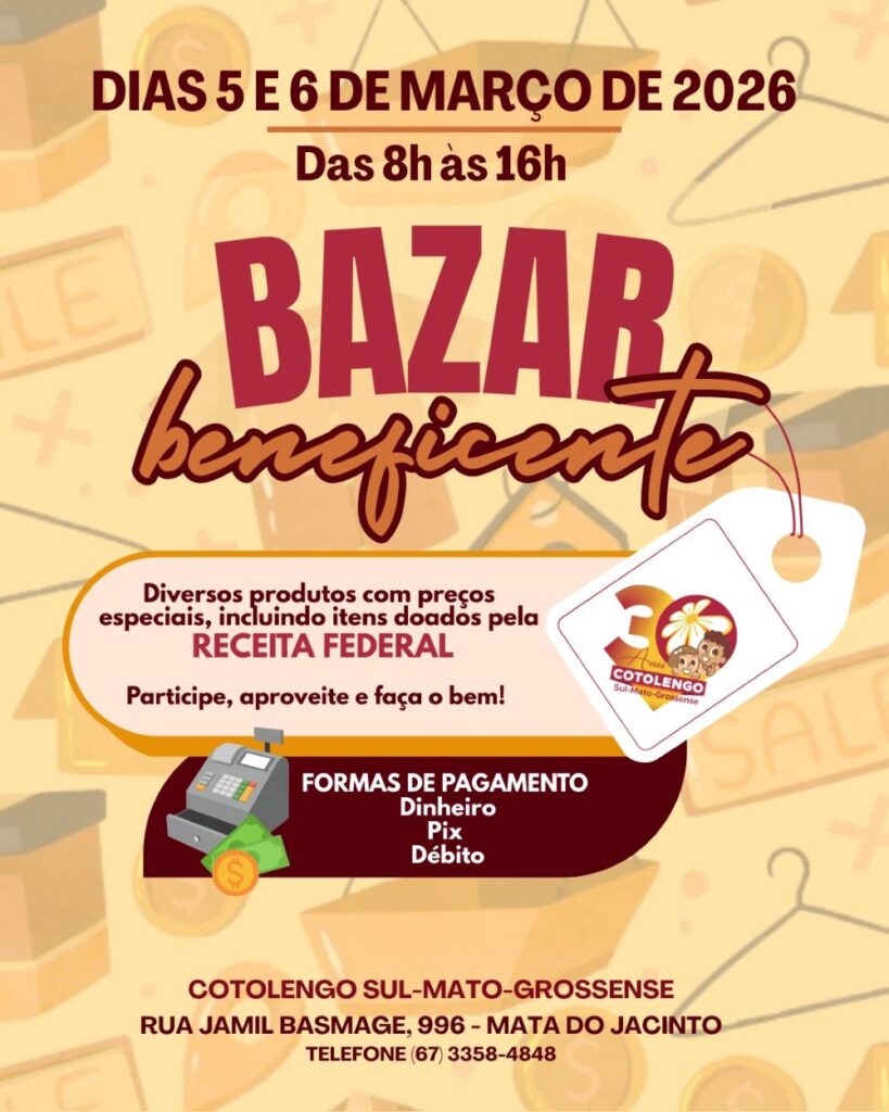 A comunidade está convidada a participar, divulgar e apoiar essa iniciativa solidária. O Cotolengo MS reforça que ações como o bazar são fundamentais para manter e ampliar os atendimentos, garantindo continuidade ao trabalho humanizado realizado diariamente.
